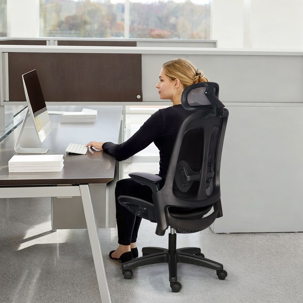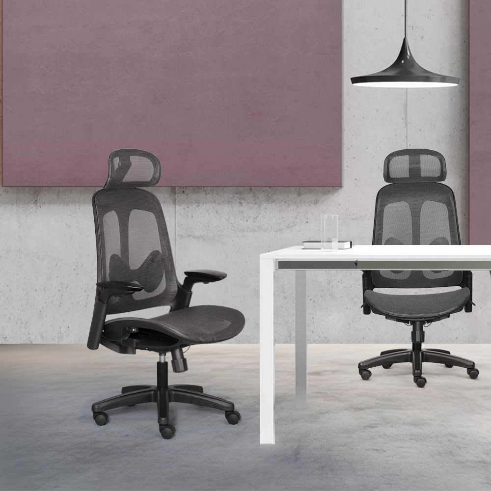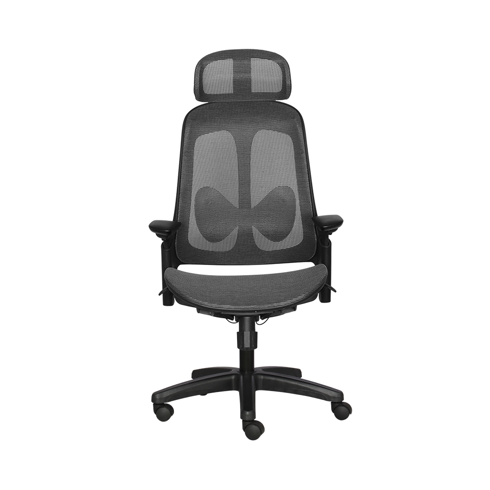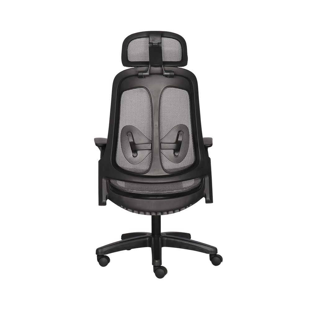 Hỗ trợ nâng đỡ đa điểm: Tựa đầu bọc lưới có khả năng điều chỉnh linh hoạt kết hợp cùng tựa lưng khung nhựa ôm sát cơ thể, giúp giảm áp lực lên vùng cổ và vai gáy.