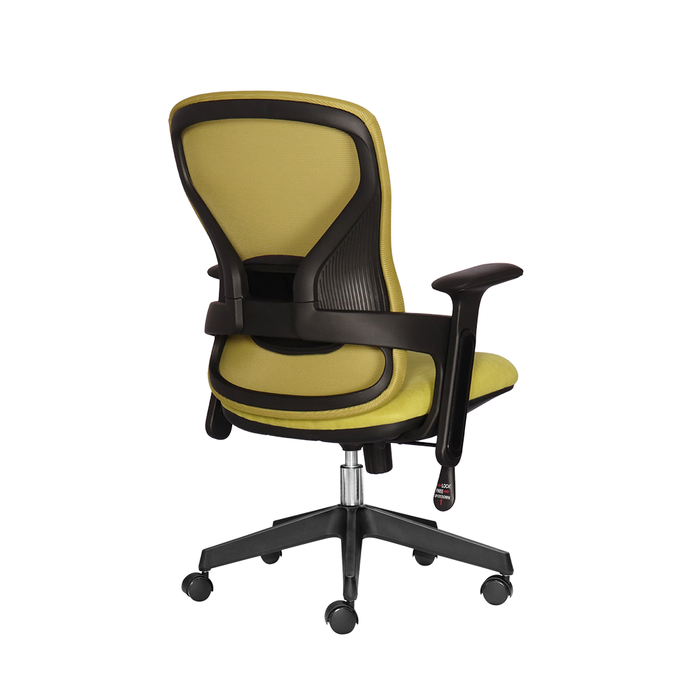 Khung lưng lưới thoáng khí: Tựa lưng khung nhựa kết hợp bọc lưới cao cấp giúp lưu thông không khí hiệu quả, ôm sát đường cong cơ thể và mang lại cảm giác mát mẻ.