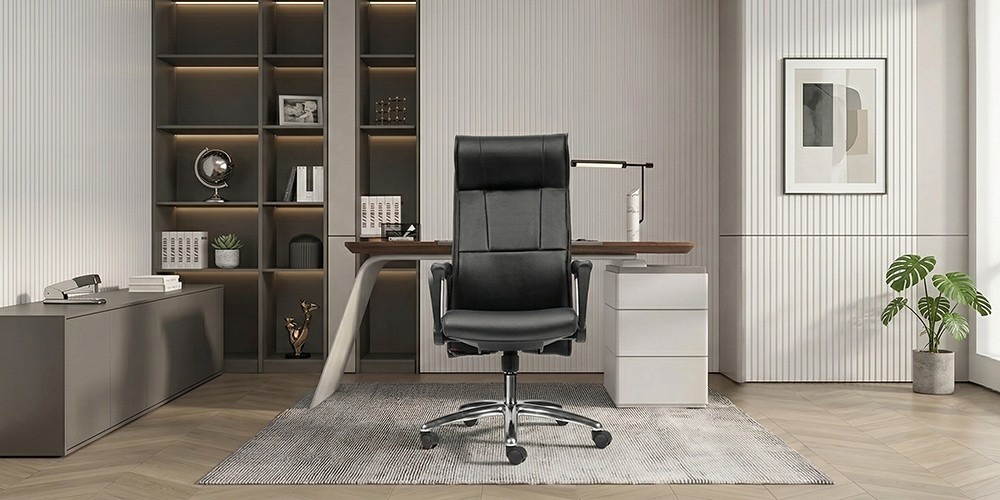 High-end office: Genuine leather upholstered chairs combined with alloy bases affirm leadership class and authority.