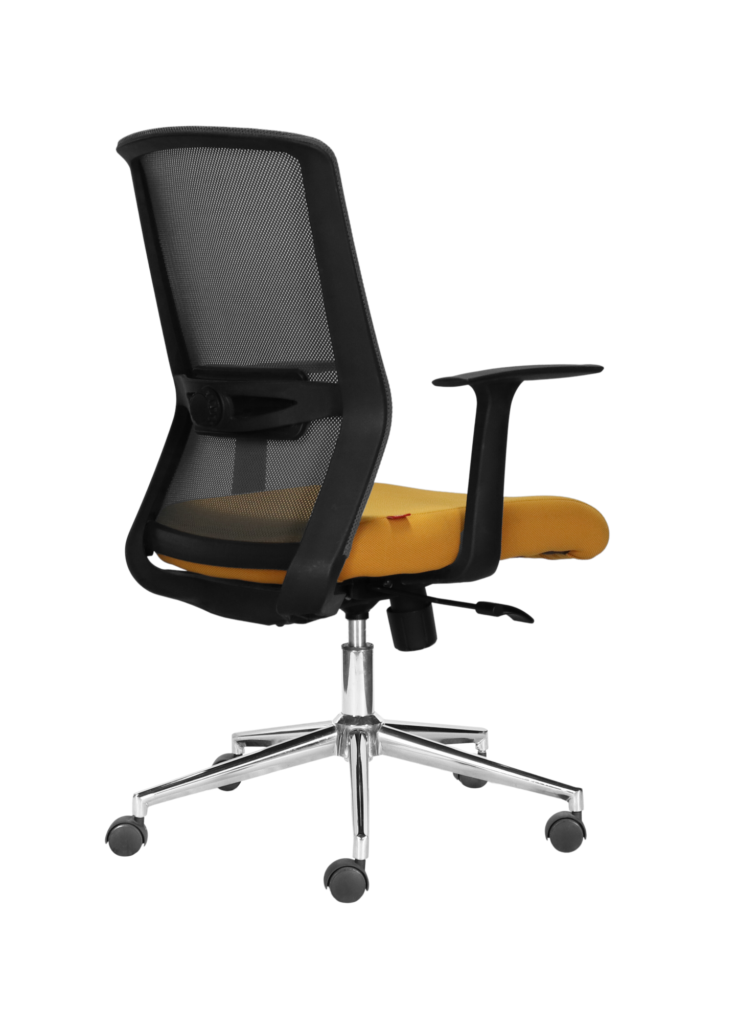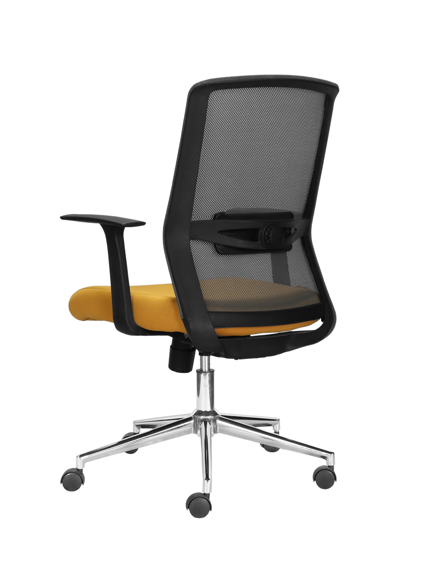 ✔ Mesh Backrest – Fixed mesh back with a sturdy plastic frame for breathable and stable support.