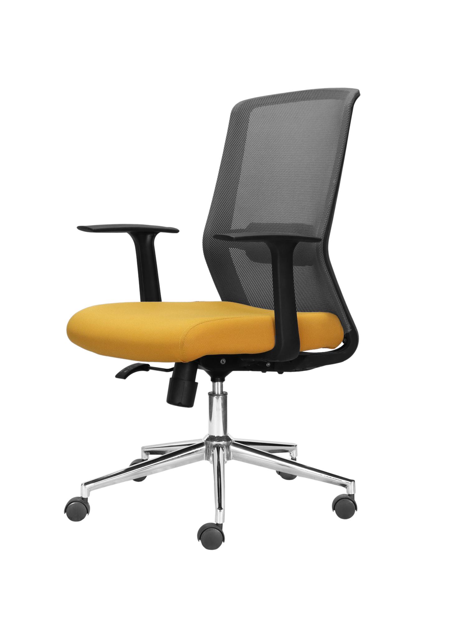 The plastic-frame mesh backrest offers excellent ventilation, helping reduce heat accumulation and keeping users comfortable throughout long working sessions. The fixed lumbar support stabilizes the lower back, while the 60mm thick high-elastic foam cushion, upholstered in fabric or vinyl, ensures comfort and long-lasting durability.