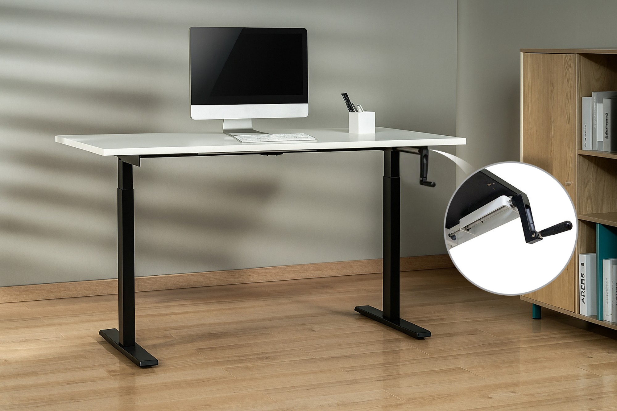 Đây là dòng bàn có cơ chế hoạt động bằng tay quay hoặc vặn trục để điều chỉnh độ cao. Ưu điểm lớn nhất của bàn cơ là độ bền cao, ít hư hỏng và giá thành hợp lý. Tuy nhiên, việc điều chỉnh thủ công khá mất thời gian, nên loại bàn này phù hợp hơn cho những không gian ít thay đổi tư thế hoặc nhu cầu sử dụng không quá thường xuyên.