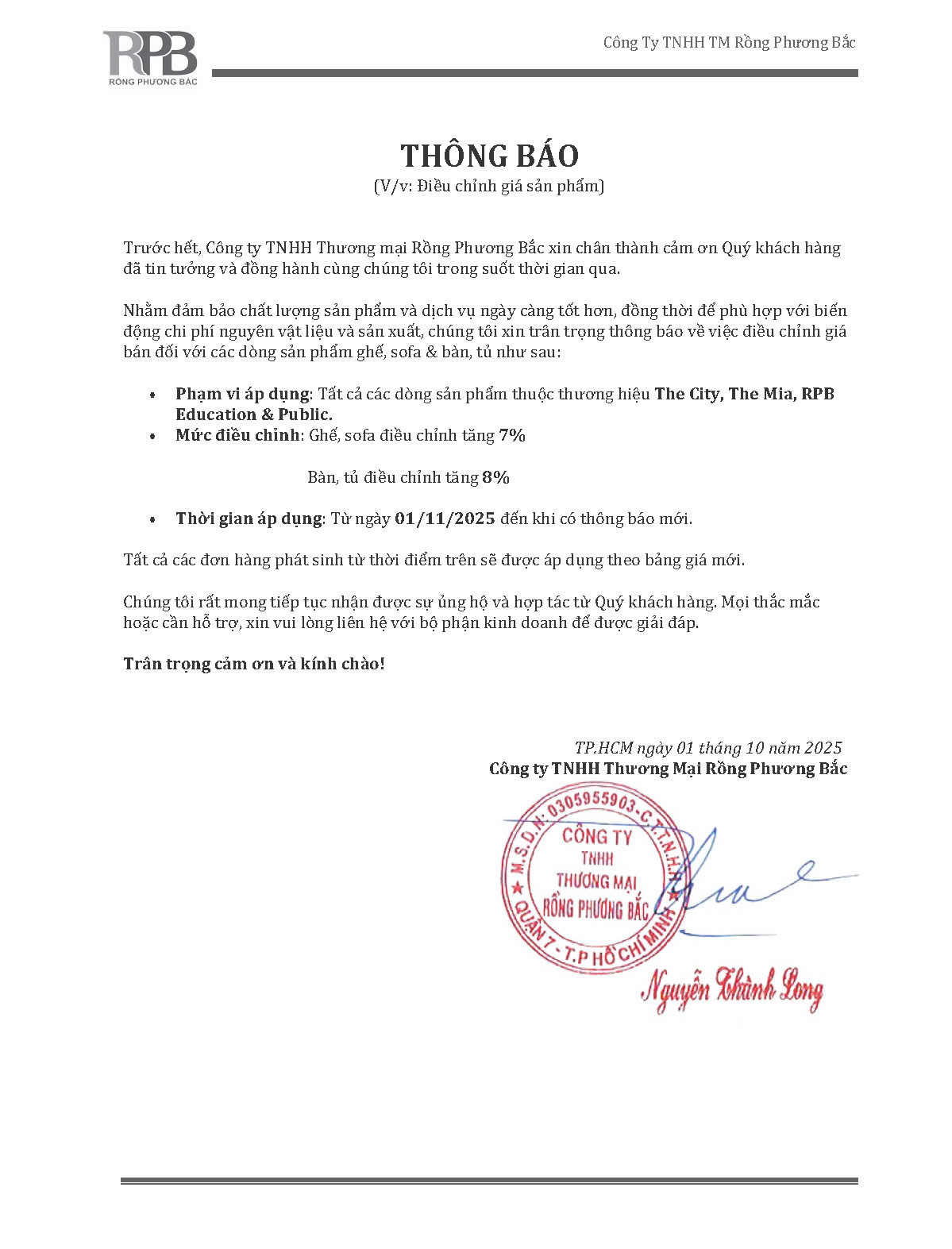 THÔNG BÁO ĐIỀU CHỈNH GIÁ SẢN PHẨM NỘI THẤT VĂN PHÒNG