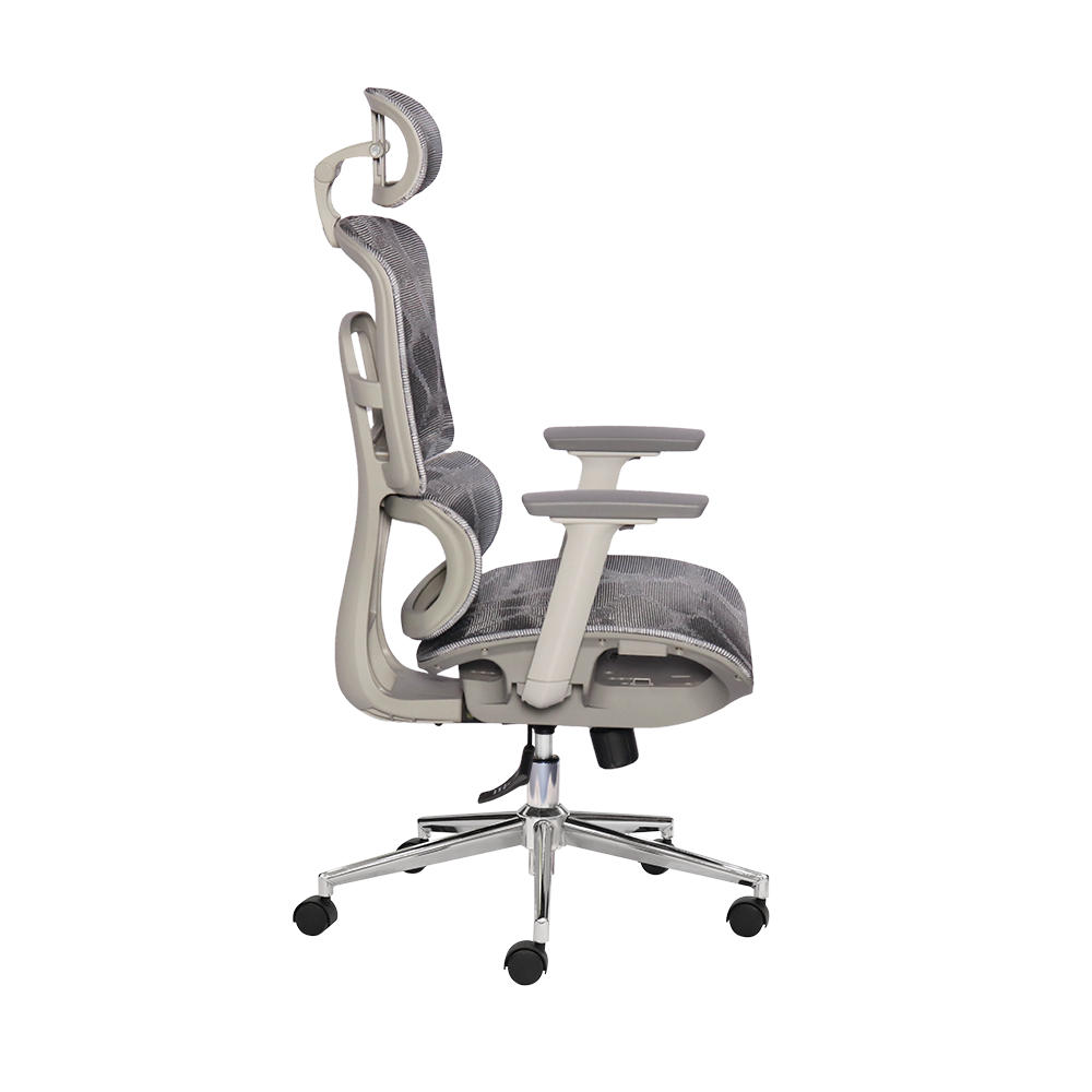 - Tựa đầu điều chỉnh: Thiết kế bọc lưới thoáng khí, hỗ trợ linh hoạt vùng cổ và đầu, giúp giảm áp lực đáng kể lên vai gáy.