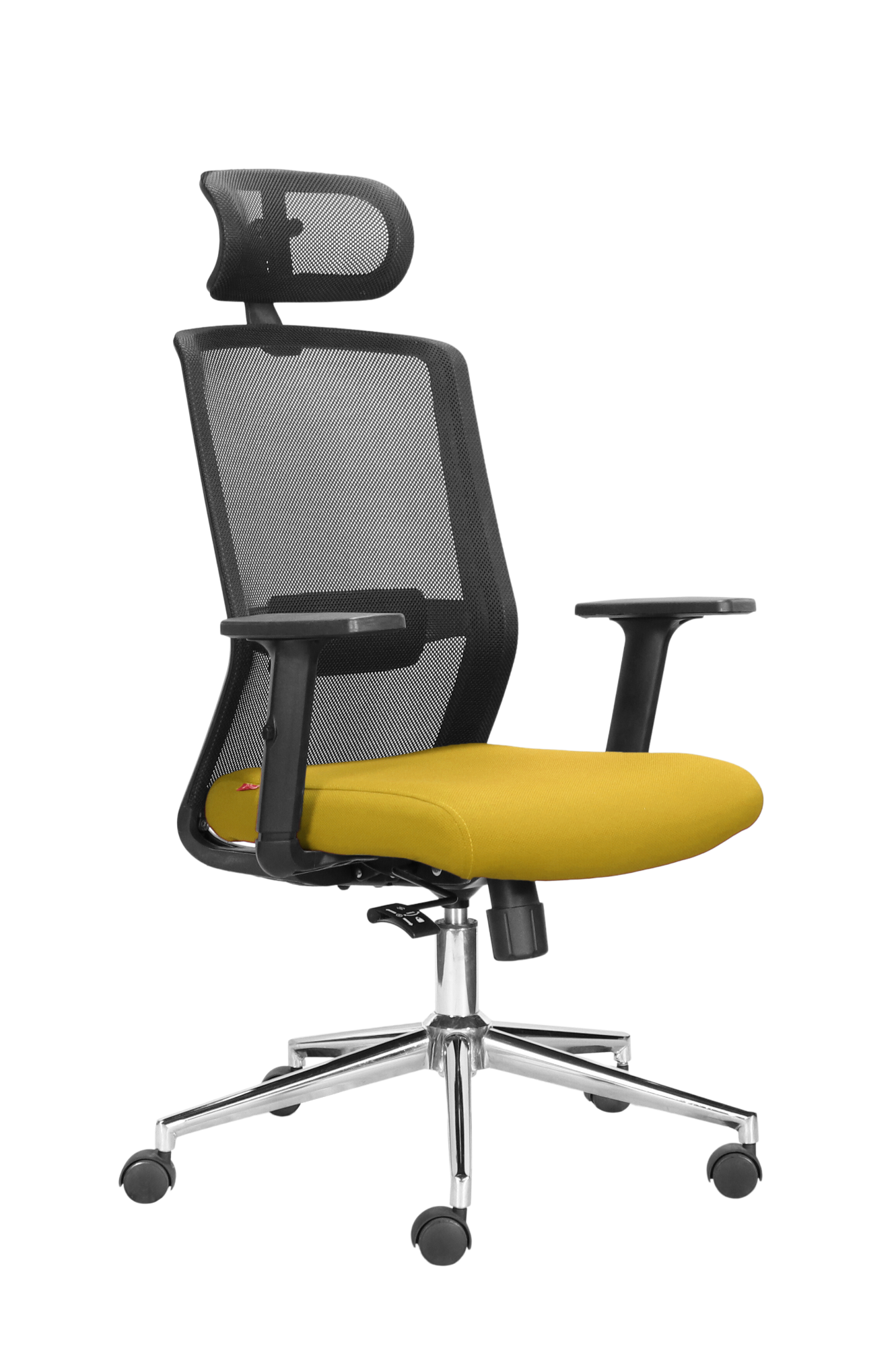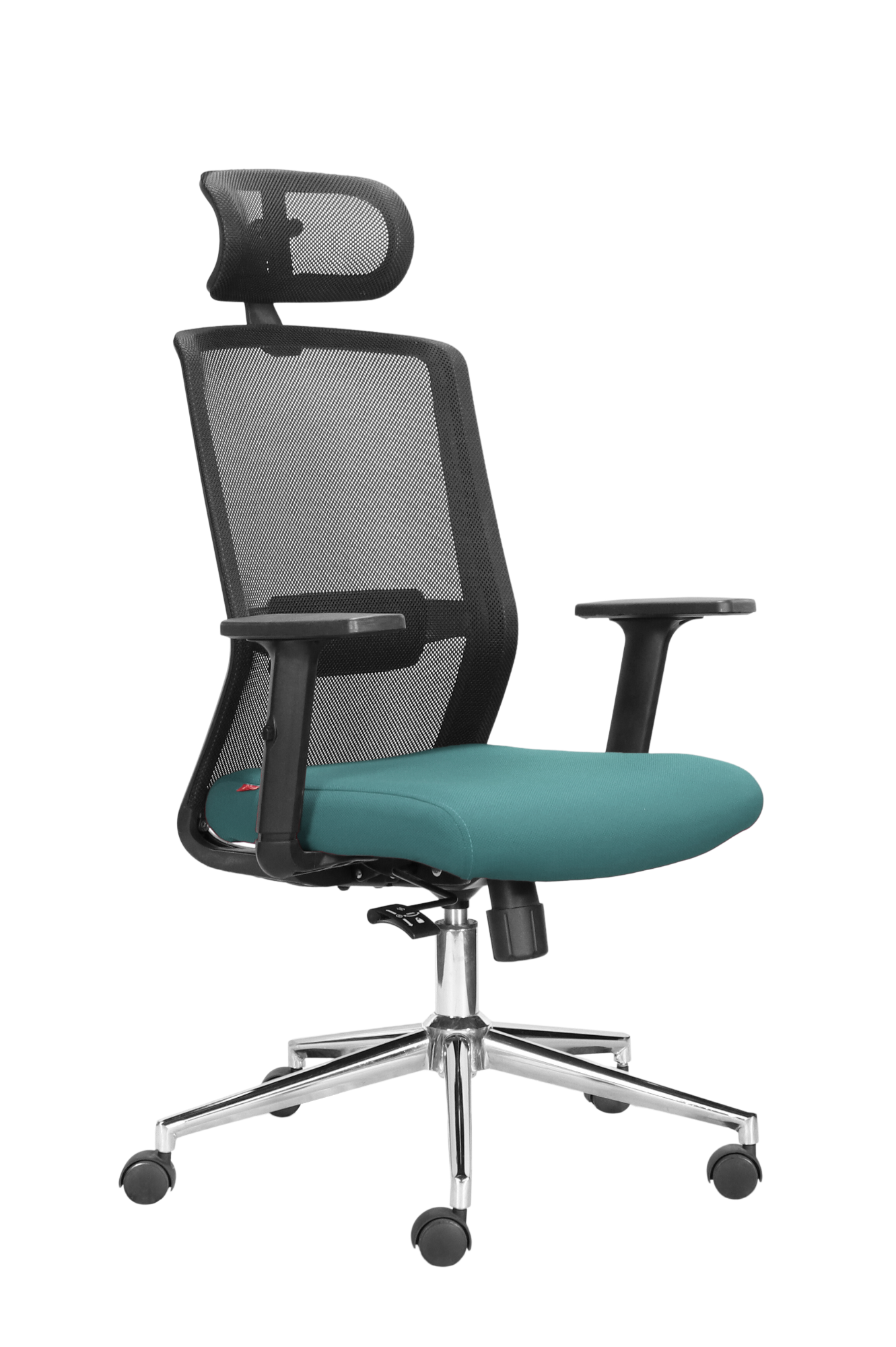 ✔ Chân sắt mạ chrome và phuộc chuẩn BIFMA mang lại độ bền và sự ổn định cao.